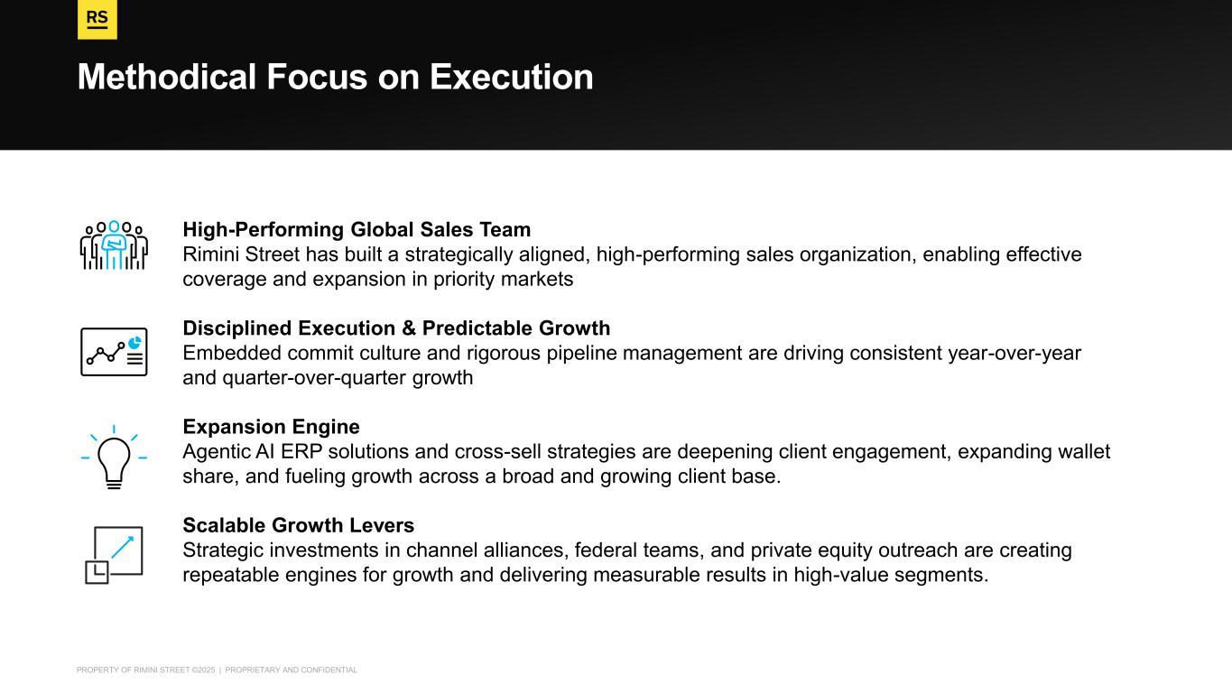 PROPERTY OF RIMINI STREET ©2025 | PROPRIETARY AND CONFIDENTIAL Methodical Focus on Execution Undistracted Focus on The Business Disciplined Capital Allocation Operational Excellence Enterprise Wide Expanding Margins with Increasing Growth