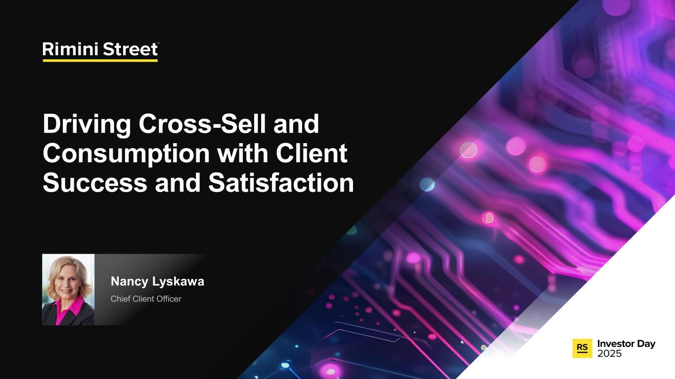 PROPERTY OF RIMINI STREET ©2025 | PROPRIETARY AND CONFIDENTIAL Exceptional Client Experience Drives Customer Led Growth 1: McKinsey, Experience-led growth: A new way to create value - March 23, 2023 2. Rimini Street estimate based on cross sell invoicing FY2022 – 2024, Q3’2025(TTM) Increase Cross-Sell Rates by 15-25%1 Increase share of wallet by 5-10%1 RIMNI STREET RESULTS … of the value creation achieved by the world’s most successful growth companies comes from their core business…unlocking new revenues from existing customers.1 Client Centric Companies Outperform Peers 80% 11% CAGR2 Cross-Sell