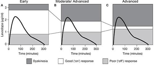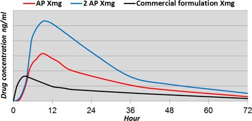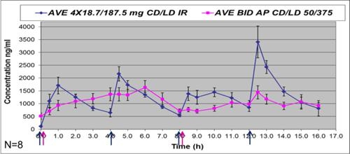 The following chart depicts the Accordion Pill’s capability to improve the PK of Levodopa, which is a drug characterized by a narrow absorption window: