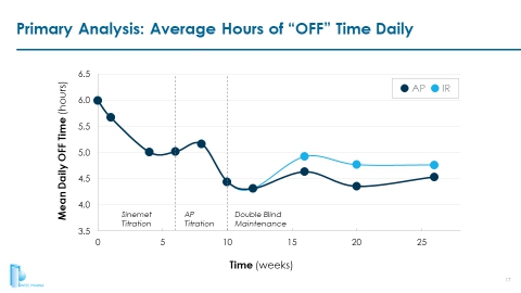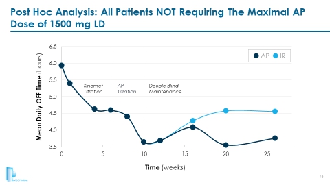 Previously, we successfully completed a Phase II clinical trial for AP-CD/LD for the treatment of Parkinson’s disease symptoms in advanced Parkinson’s disease patients and in February 2019, we announced that AP-CD/LD met the primary endpoint in a pharmacokinetic, or PK, study comparing the AP-CD/LD 50/500mg dosed three times daily, the most common dose used in our ACCORDANCE study, to 1.5 tablets of CD/LD immediate release (Sinemet™) 25/100 dosed five times per day in Parkinson’s disease patients.