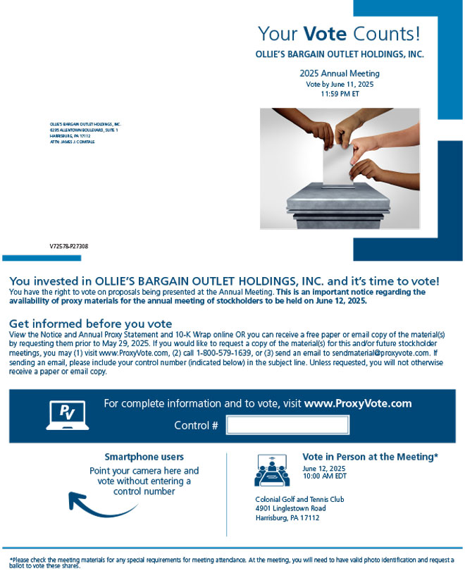 OLLIE’S BARGAIN OUTLET HOLDINGS, INC.