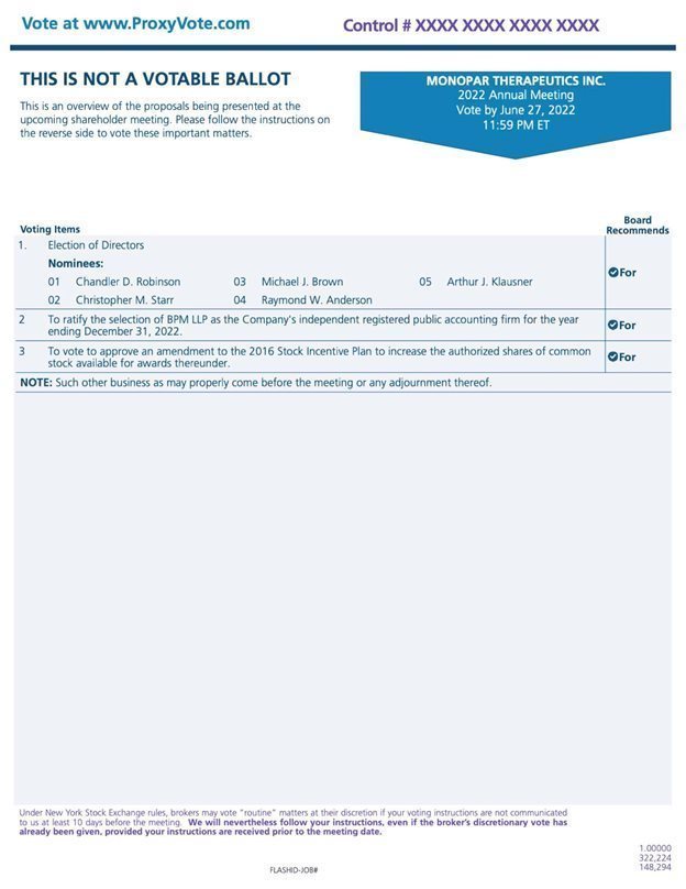 | MONOPAR THERAPEUTICS INC. |