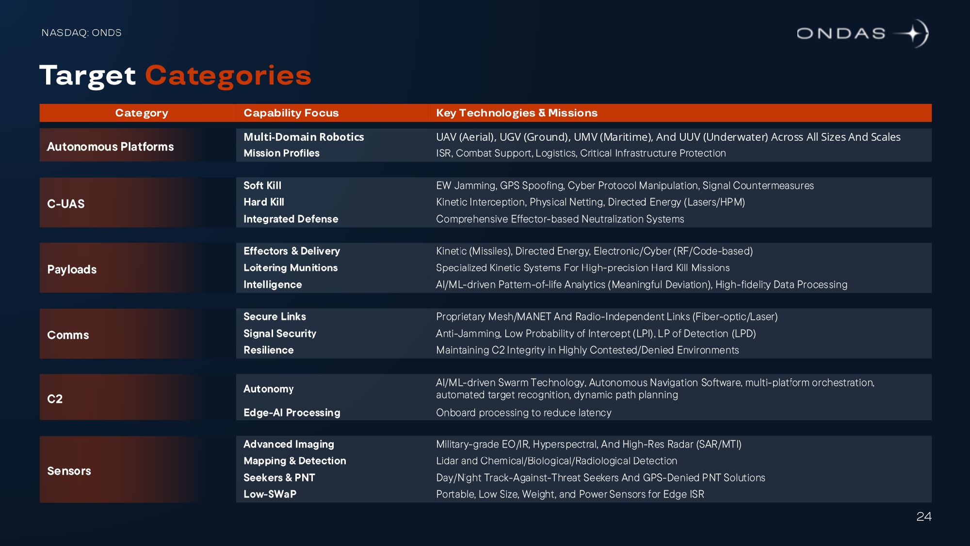 • • • • • • • • • CUAS Aerial / Land ISR UGV Other