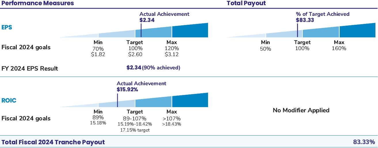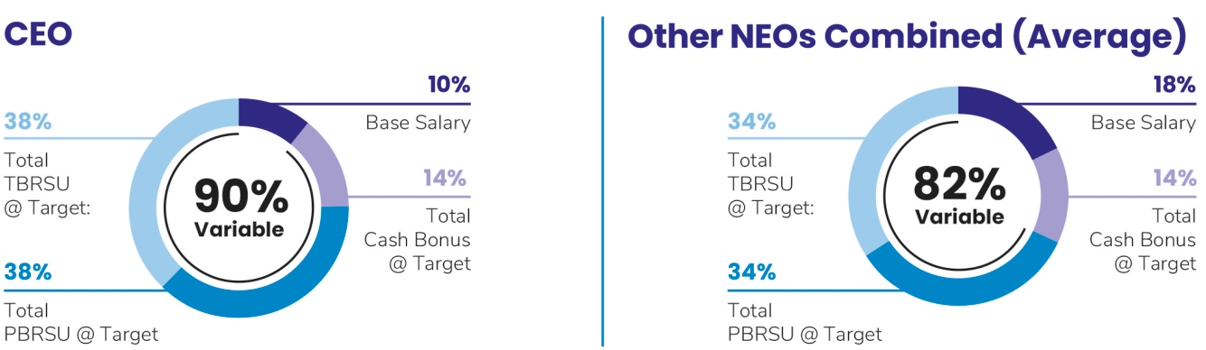 Covered individuals are expected to achieve the target level within five years from June 30, 2020, or their appointment date. Until then, covered individuals, including the NEOs, must hold 50% of Common Stock received upon the (i) vesting and settlement of performance shares or performance stock units; (ii) vesting of shares of restricted stock; and (iii) vesting and settlement of RSUs, except those needed to pay applicable taxes.