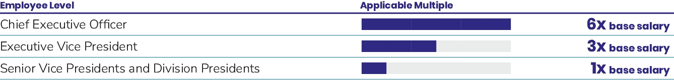 To more closely align senior management’s interests with those of our stockholders, the Board has adopted stock ownership guidelines. These guidelines require certain senior executives to acquire and hold a minimum dollar value of our Common Stock as detailed below: