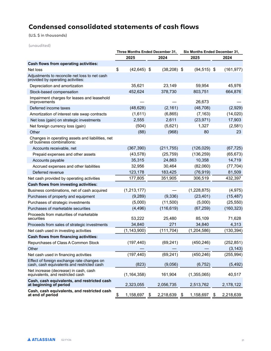 Q2 FY26 Condensed consolidated statements of cash flows (U.S. $ in thousands) (unaudited) 21