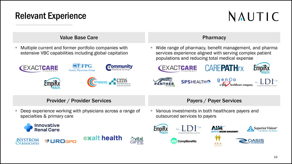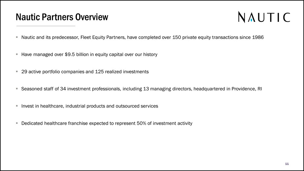 “plan,” “project,” “seek,” “should,” “target,” “would,” and similar expressions or variations intended to identify forward-looking statements. These statements are based on the beliefs and assumptions of Nautic Partners (“Nautic”) and