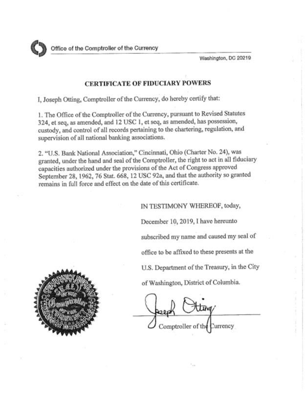 3. A copy of the certificate of authority of the Trustee to exercise corporate trust powers, attached as Exhibit 3.