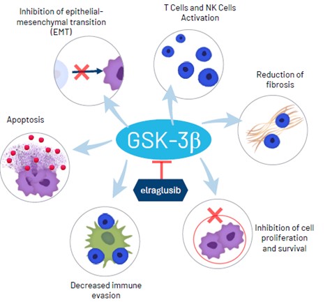 We are a clinical stage biopharmaceutical company focused on developing therapies for the treatment of high impact, difficult to treat cancers through the inhibition of glycogen synthase kinase-3 (GSK-3). We are developing elraglusib (formerly 9-ING-41), an ATP-competitive small molecule that is designed to enter cancer cells and block the function of the enzyme glycogen synthase kinase-3 beta (“GSK-3β”), a master regulator of complex biological signaling cascades, including those mediated by oncogenes, that lead to tumor cell survival, growth, migration, and invasion. We believe that the blockade of GSK-3β signaling ultimately results in the death of the cancer cells and the regulation of anti-tumor immunity.