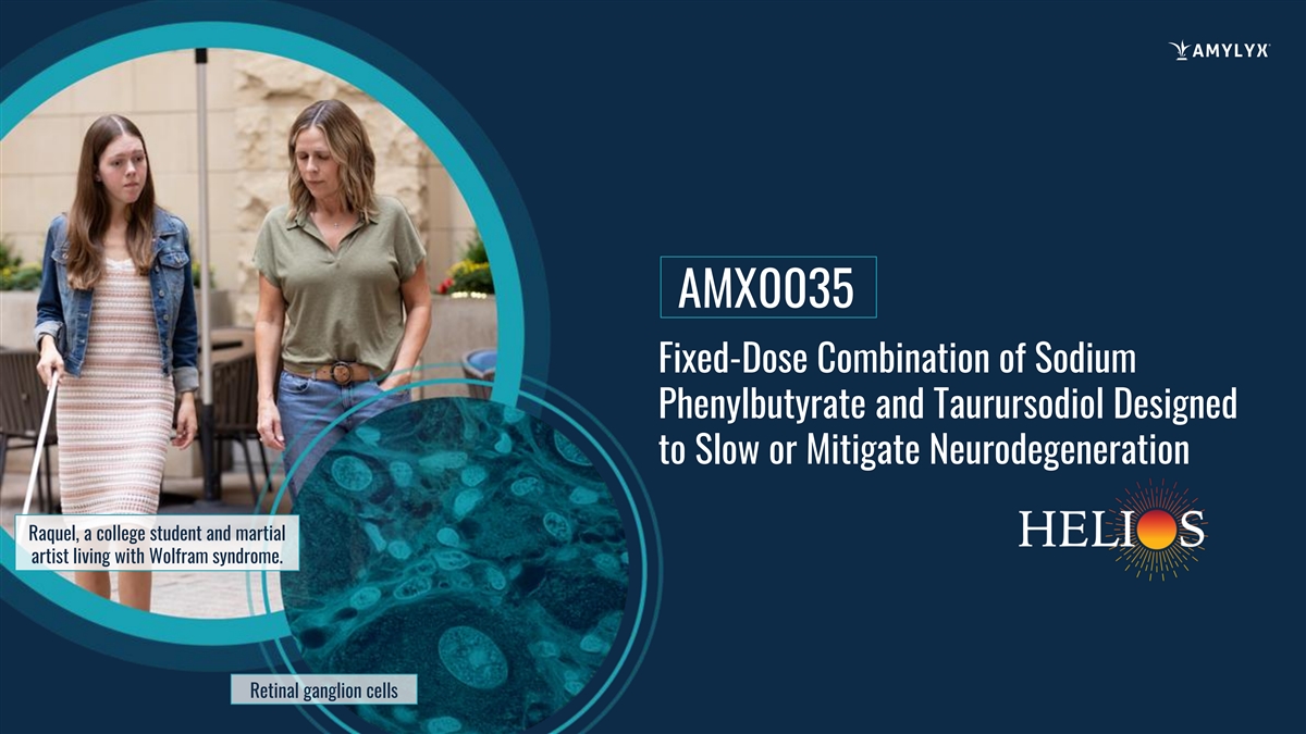 AMX0035 Fixed-Dose Combination of Sodium Phenylbutyrate and Taurursodiol Designed to Slow or Mitigate Neurodegeneration Raquel, a college student and martial artist living with Wolfram syndrome. Retinal ganglion cells