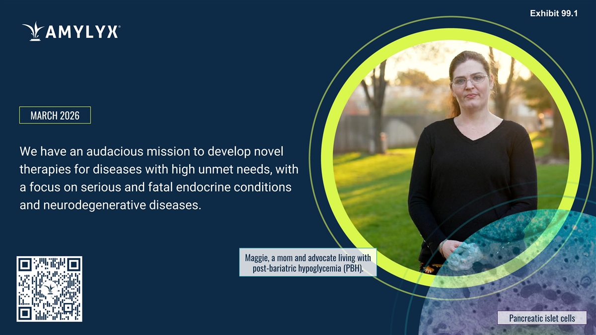 MARCH 2026 We have an audacious mission to develop novel therapies for diseases with high unmet needs, with a focus on serious and fatal endocrine conditions and neurodegenerative diseases. Maggie, a mom and advocate living with post-bariatric hypoglycemia (PBH). Pancreatic islet cells