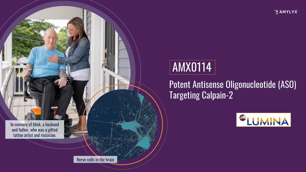 AMX0114 Potent Antisense Oligonucleotide (ASO) Targeting Calpain-2 In memory of Mick, a husband and father, who was a gifted tattoo artist and musician. Nerve cells in the brain