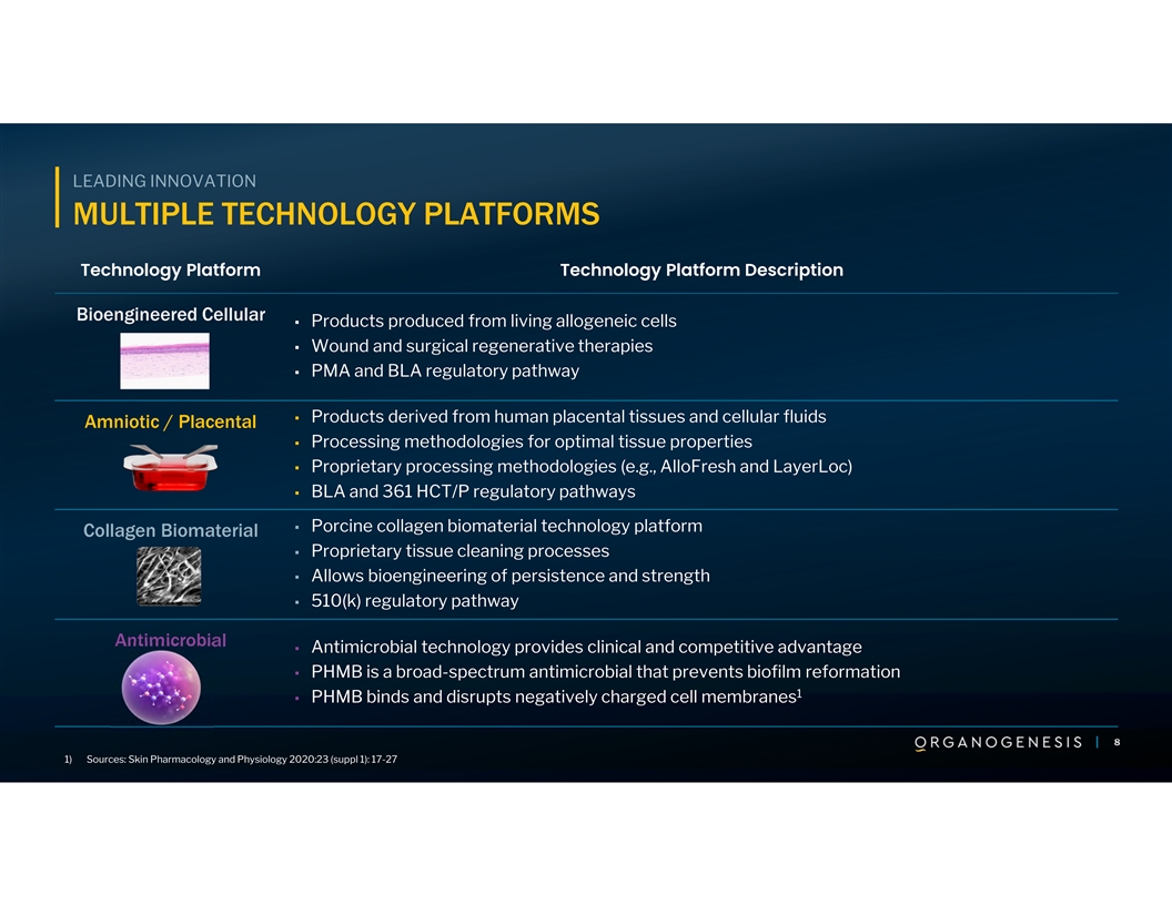 MARKET OPPORTUNITY SUPPORTING PATIENTS IN LARGE GROWING MARKETS ADVANCED WOUND CARE SURGICAL WOUND CARE OSTEOARTHRITIS 1 1 2 ~$11B ~$9B ~$7B ~$27B TOTAL ADDRESSABLE MARKET 7 1) Grand View Research (2021): Global Wound Care Market Report (2021-2028) 7 7 2) Grand View Research (2023): Osteoarthritis Injectables Market Report (2024-2030)