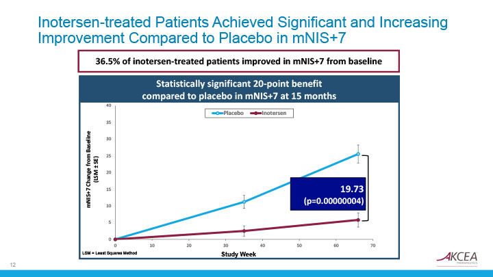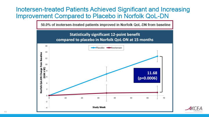 So an important advantage for these patients, to be able to continue to hold onto their independence, as this disease affects them. In the Phase 3 trial for inotersen, importantly, inotersen showed significant and increasing improvement in quality of life as measured by the Norfolk quality of life score and also showed a significant increasing improvement in their mNIS+7 score, this is a score of their neuropathy intensity.