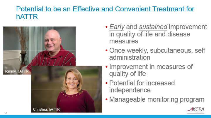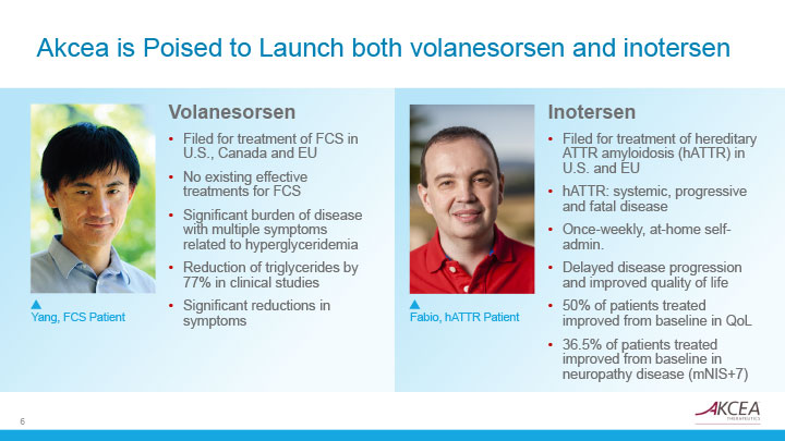 We’ll just start with inotersen. This is a drug that we believe truly can transform hereditary ATTR. This is a disease that is very devastating, it's progressive and it is fatal. It's a disease that runs in families, many patients, who have seen and watched their parents, their siblings just deteriorate from this disease. And our goal within inotersen is to change the face of this disease, to change the course of the lives of these patients. And bring a truly effective treatment for these patients.