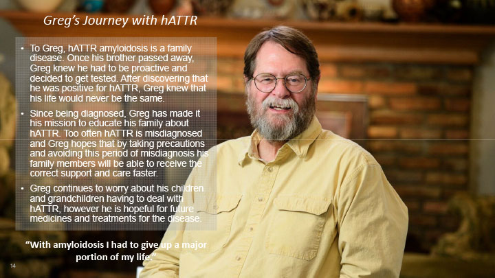Just to note, this is Greg, he's one of the typical teacher of patients, it's very much a family disease. He watched his brother deteriorate and die slowly of this disease. He lives with this disease every day and is affected and worries about his children and how they will be affected. And so has renewed hope now with possibility of a drug changing the phase of this disease for his children.