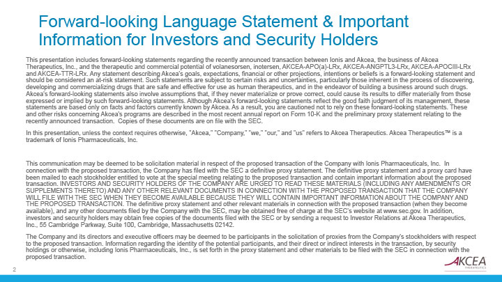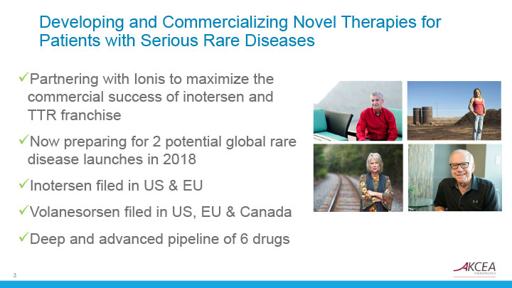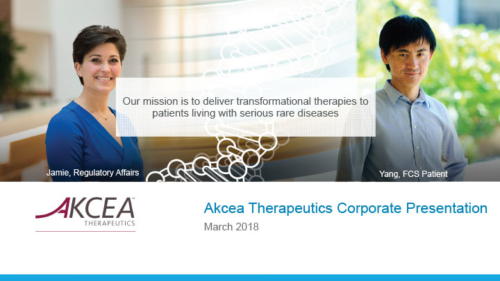Thank you, Marc. Pleasure to be here today to talk to you about Akcea Therapeutics. We're a company focused on developing transformative therapies for patients with serious diseases.