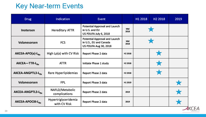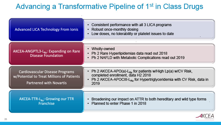 So a lot of things going on in the company, quite a bit of near-term events starting with of course, approval of inotersen and volanesorsen and global launches. And then significant amounts of data readouts across our pipeline in the start of our Phase 1 study for TTR-LRx, which is the LICA form of TTR.