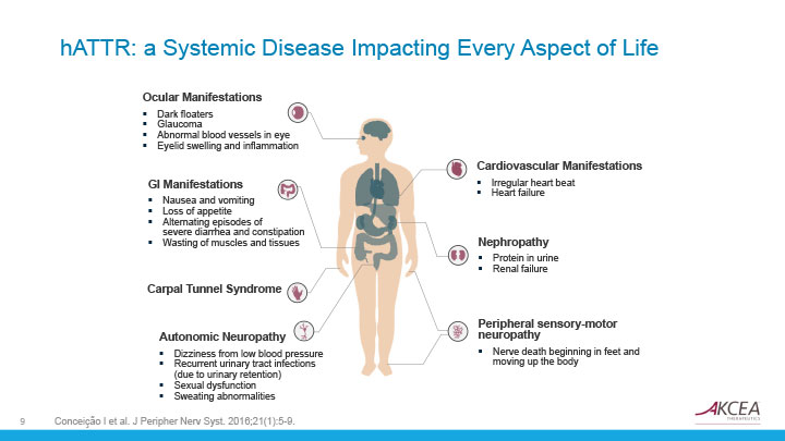It is, as I said, a devastating disease but it's a very systemic disease. It is caused by the missed folding of the TTR proteins, which then creates amyloid fibrosis, which deposits throughout the tissues in the body. So, there are effects throughout the body, most devastating which are neuropathy and these patients start to lose the ability to feel their feet, to be able to push a gas pedal. They can't drive, they can't really, they lose the ability to walk, they end-up in a wheelchair.