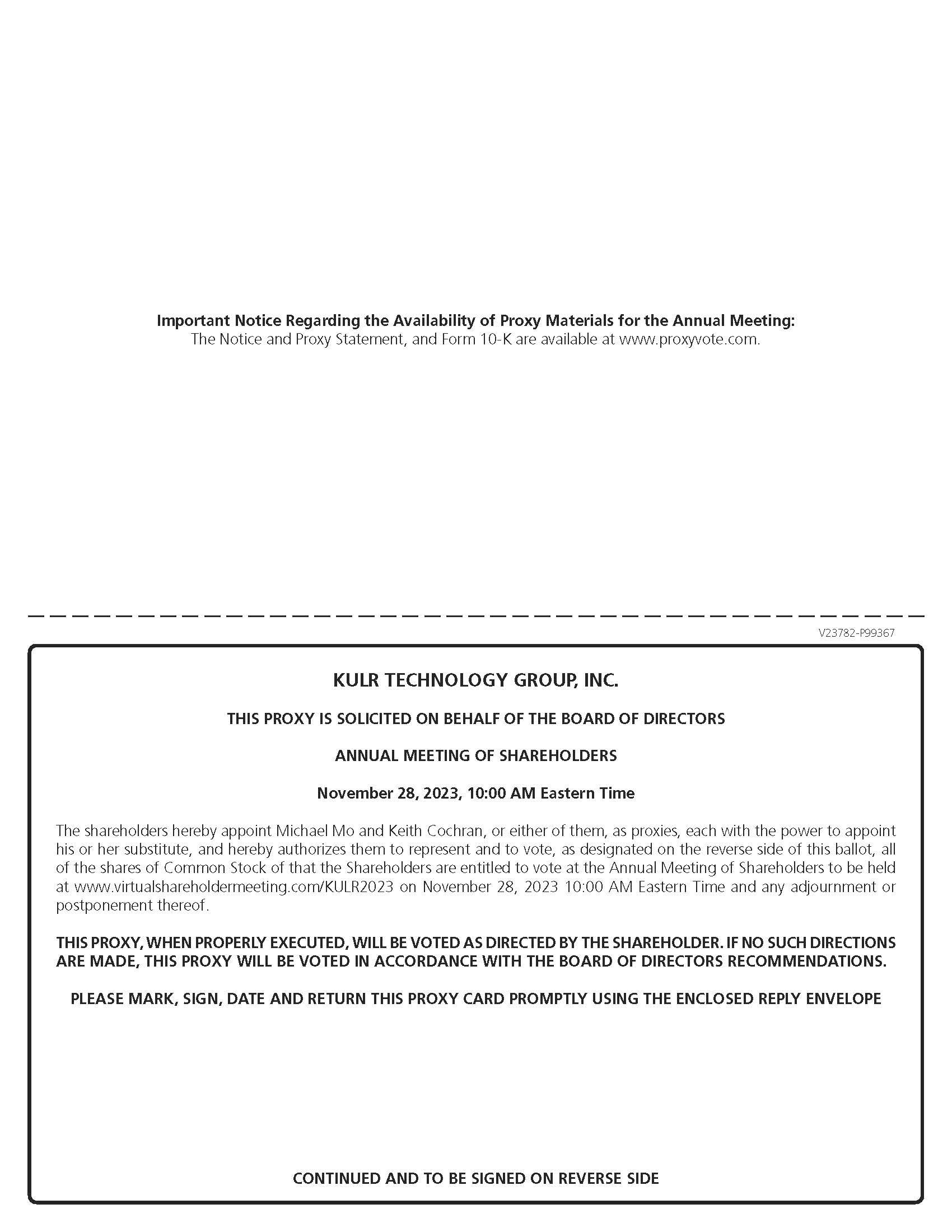The annual meeting of shareholders (the “Meeting”) of KULR Technology Group, Inc. (which we refer to as “KULR” or the “Company”) will be a completely virtual meeting of shareholders.