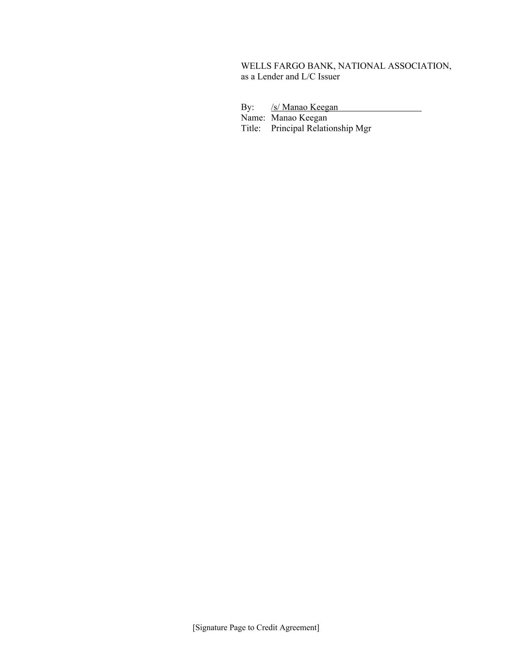 [Signature Page to Credit Agreement] WELLS FARGO BANK, NATIONAL ASSOCIATION, as a Lender and L/C Issuer By: /s/ Manao Keegan Name: Manao Keegan Title: Principal Relationship Mgr