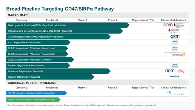 We are also preparing to advance two additional investigational compounds into clinical testing. FSI-174, an anti-cKIT antibody, is being developed alone or in combination with magrolimab as a novel, all-antibody conditioning regimen to address the limitations of current stem cell transplantation conditioning regimens. FSI-189, an anti-SIRPα antibody, is being developed for the treatment of cancer, as well as certain non-oncology conditions, including transplantation conditioning.