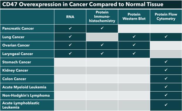 | • | Blocking the CD47 “don’t eat me” signaling pathway leads to elimination of many types of tumors and increased survival; |