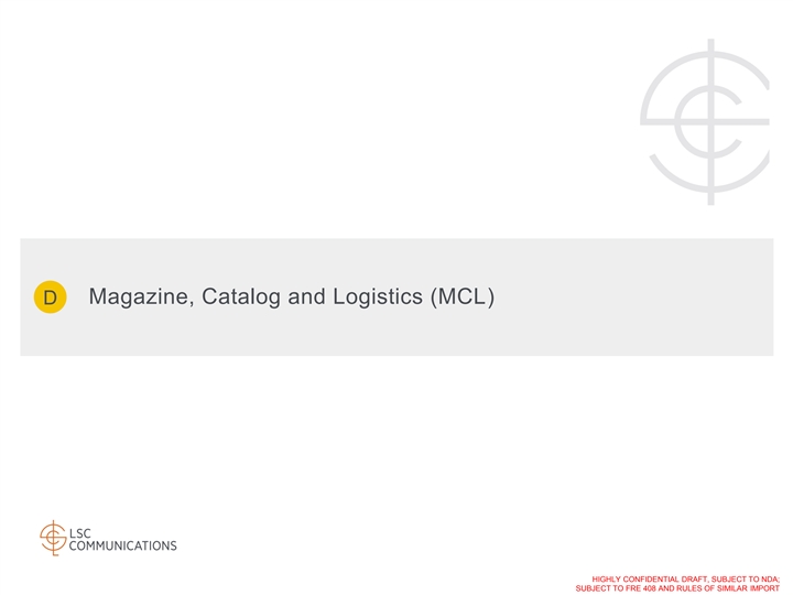 D 3. Magazine, Catalog and Logistics (MCL) HIGHLY CONFIDENTIAL DRAFT, SUBJECT TO NDA; SUBJECT TO FRE 408 AND RULES OF SIMILAR IMPORTD 3. Magazine, Catalog and Logistics (MCL) HIGHLY CONFIDENTIAL DRAFT, SUBJECT TO NDA; SUBJECT TO FRE 408 AND RULES OF SIMILAR IMPORT