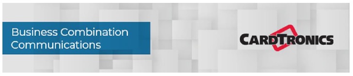 Statements that describe or relate to Cardtronics’ plans, goals, intentions, strategies, or financial outlook, and statements that do not relate to historical or current fact, are examples of forward-looking statements. Examples of forward-looking statements include, without limitation, statements regarding Cardtronics’ plans to manage its business through the novel strain of the coronavirus identified in late 2019 ("COVID-19") pandemic and the health and safety of its customers and employees; the expected impact of the COVID-19 pandemic on Cardtronics' operating goals and actions to manage these goals; expectations regarding cost and revenue synergies; expectations regarding Cardtronics’ cash flow generation, cash reserve, liquidity, financial flexibility and impact of the COVID-19 pandemic on Cardtronics' employee base; expectations regarding Cardtronics’ ability to capitalize on market opportunities; Cardtronics’ financial outlook; the effect of the announcement of the proposed transaction on the ability of Cardtronics to retain and hire key personnel and maintain relationships with customers, suppliers and others with whom Cardtronics does business, or on Cardtronics operating results and business generally; risks that the proposed transaction disrupts current plans and operations and the potential difficulties in employee retention as a result of the proposed transaction; the outcome of any legal proceedings related to the proposed transaction; the occurrence of any event, change or other circumstances that could give rise to the termination of the acquisition agreement; the ability of the parties to consummate the proposed transaction on a timely basis or at all; the satisfaction of the conditions precedent to consummation of the proposed transaction, including the ability to secure regulatory approvals on the terms expected, at all or in a timely manner; the ability of Cardtronics to implement its plans, forecasts and other expectations with respect to its business after the completion of the proposed transaction and realize expected benefits; business disruption following the proposed transaction; and the potential benefits of an acquisition of Cardtronics.