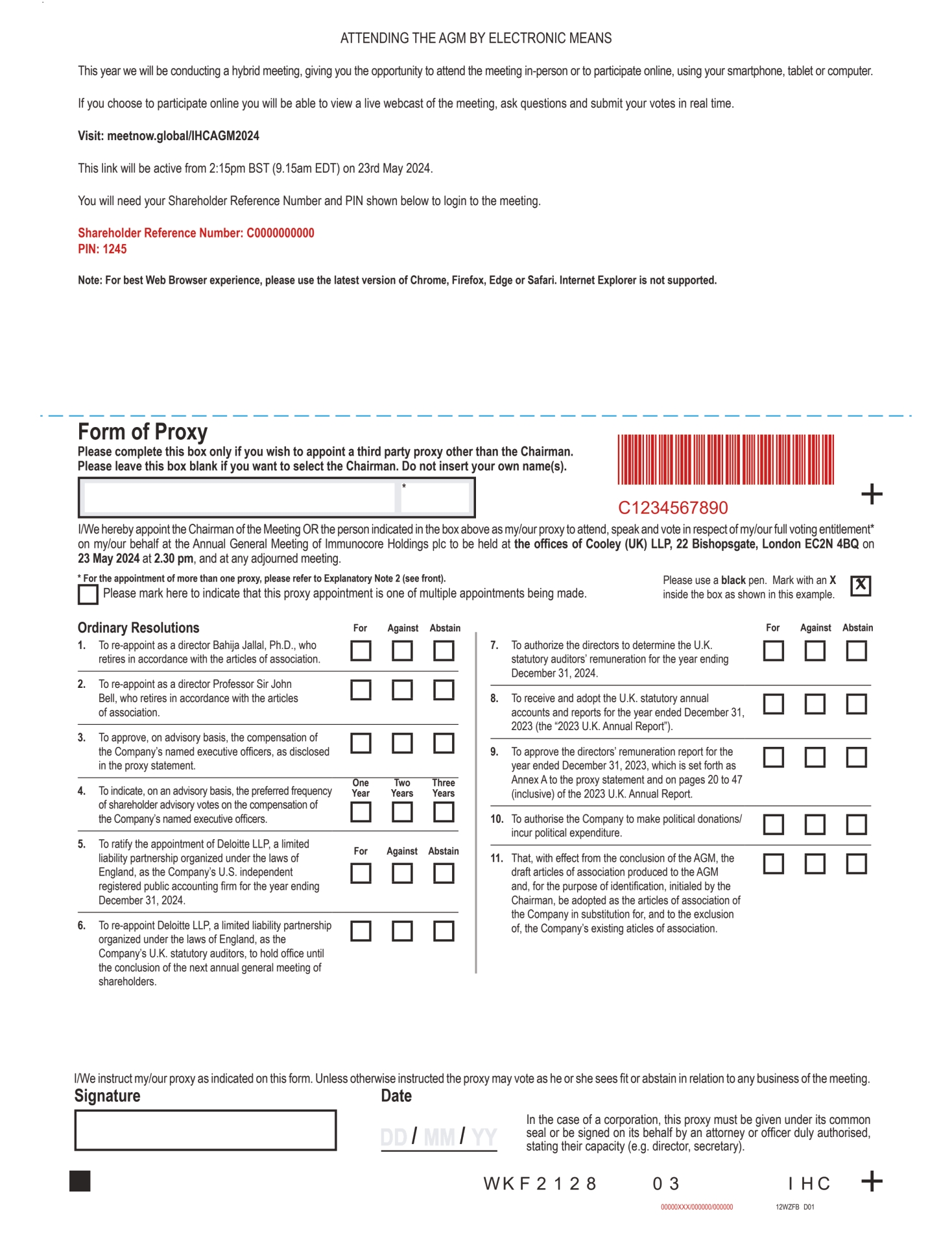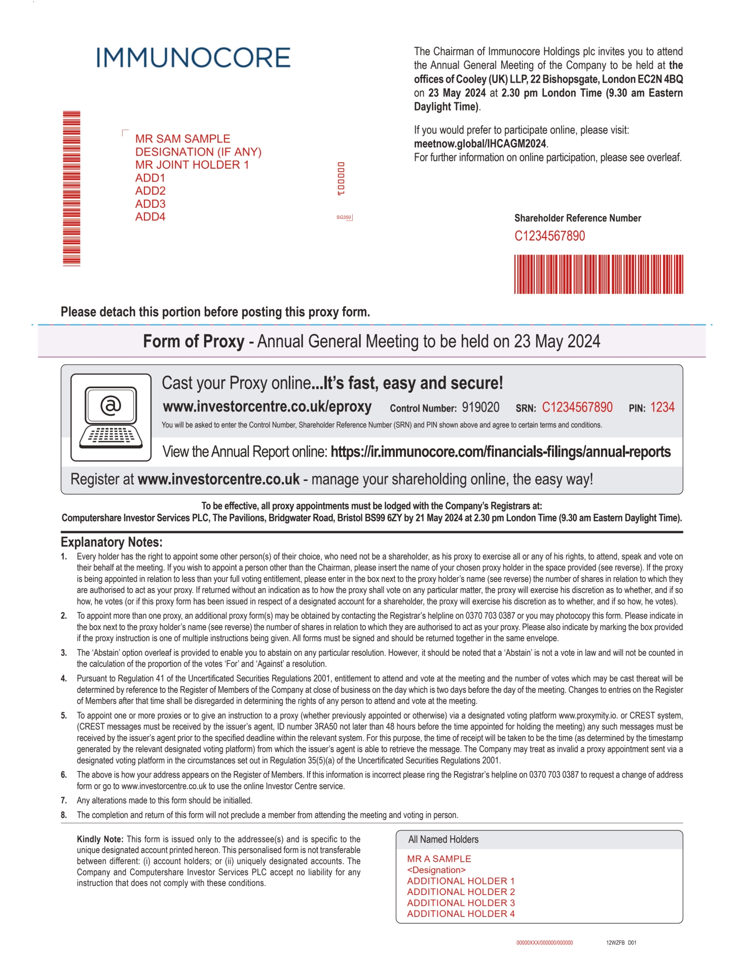 Thank you for your ongoing support of and continued interest in Immunocore Holdings plc. We look forward to receiving your vote in respect of the business to be conducted at the AGM.