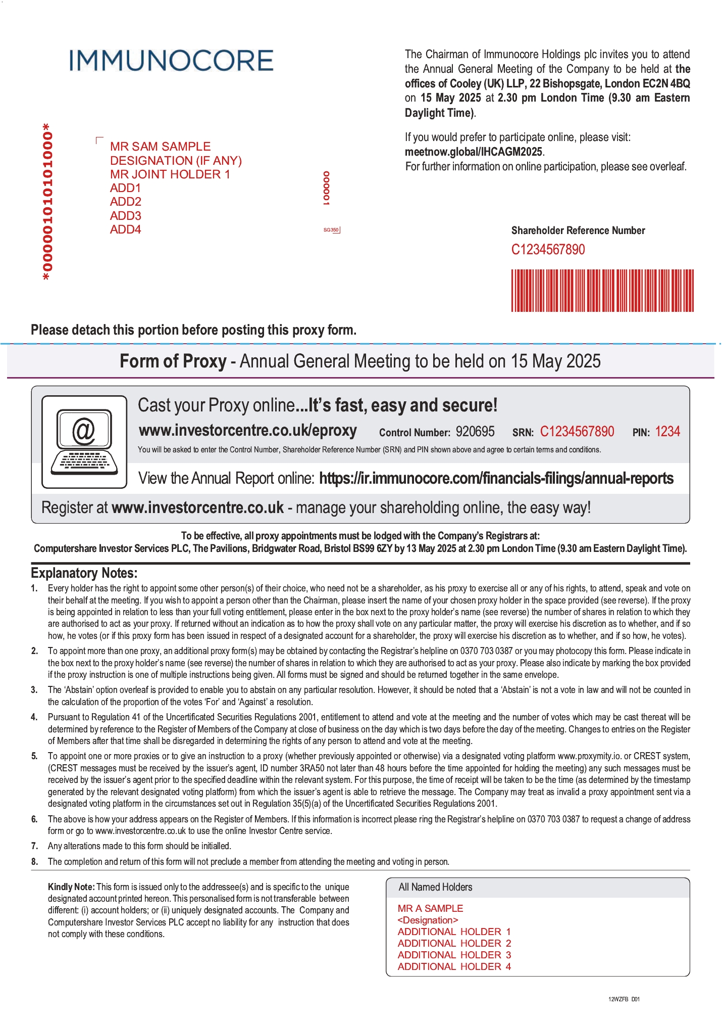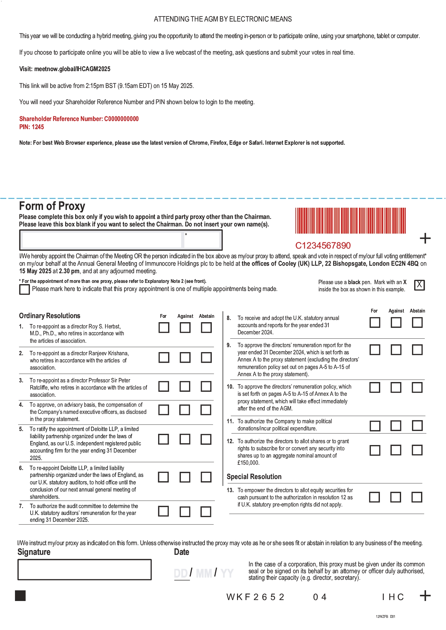 If, on or prior to May 13, 2025, you sell or transfer our ordinary shares that you currently hold, your form of proxy can no longer be used and if submitted (whether before or after you sell or transfer your ordinary shares) will be treated as invalid. Please pass this document to the person who arranged the sale or transfer for delivery to the purchaser or transferee. The purchaser or transferee should contact Lily Hepworth, Company Secretary, to request a new form of proxy for their use.