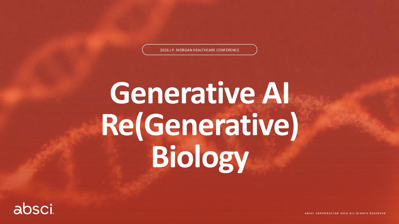 Generative AI Re(Generative) Biology A B S C I C O R P O R A T I O N 2 0 2 6 A L L R I G H T S R E S E R V E D 2026 J.P. MORGAN HEALTHCARE CONFERENCE