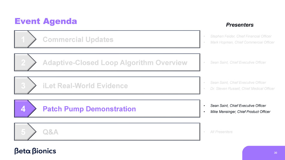 Event Agenda 1 2 5 4 3 3 Commercial Updates Q&A Adaptive - Closed Loop Algorithm Overview iLet Real - World Evidence Patch Pump Demonstration Presenters • Stephen Feider, Chief Financial Officer • Mark Hopman, Chief Commercial Officer • All Presenters • Sean Saint, Chief Executive Officer • Sean Saint, Chief Executive Officer • Dr. Steven Russell, Chief Medical Officer • Sean Saint, Chief Executive Officer • Mike Mensinger, Chief Product Officer