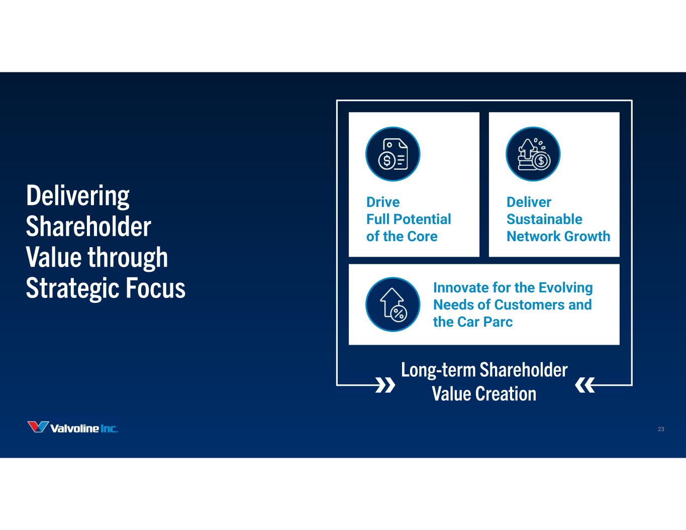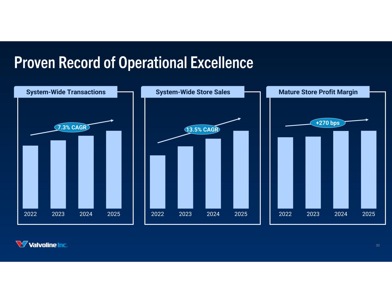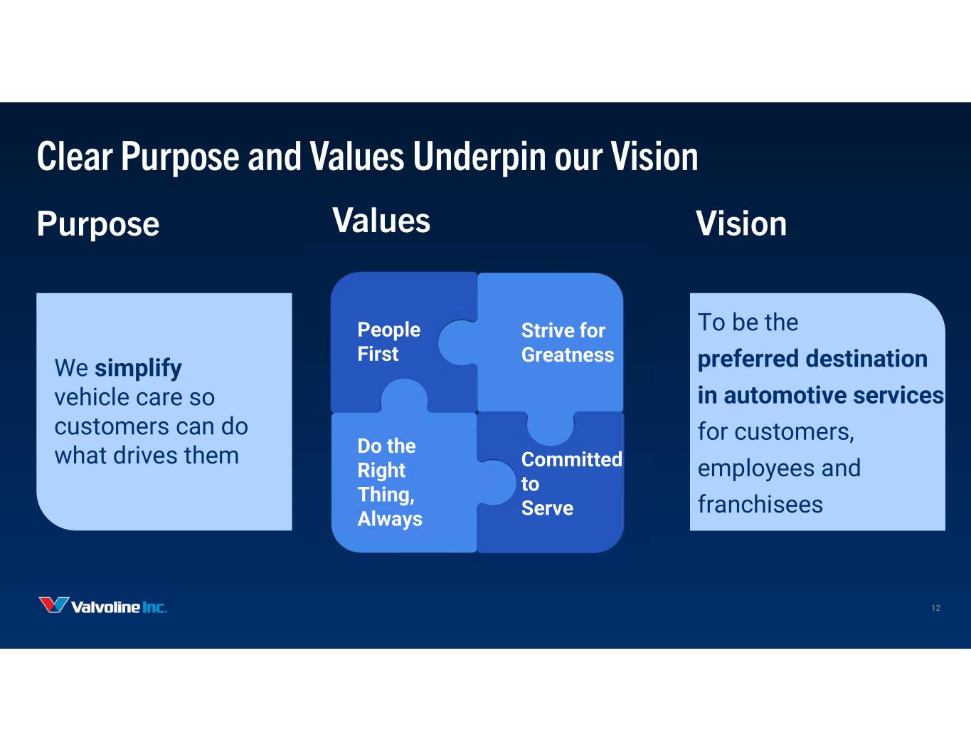 Valvoline has a Legacy of Delivering Value Valvoline’s Legacy Began First Company Quick Lube store acquired First Franchise Quick Lube store opened Valvoline Goes Public 1,000th Quick Lube store opened 1,500th Quick Lube store opened Valvoline becomes a pure-play retail services provider 2,365 System-Wide Stores 1866 1986 1989 2016 2021 2023 As of Dec 1st 10
