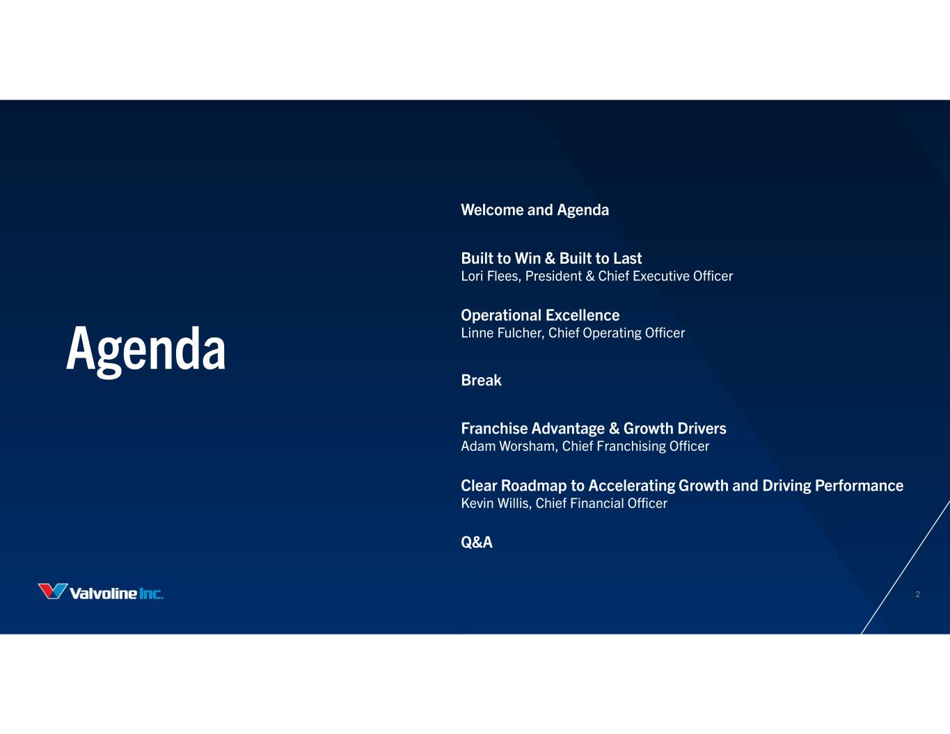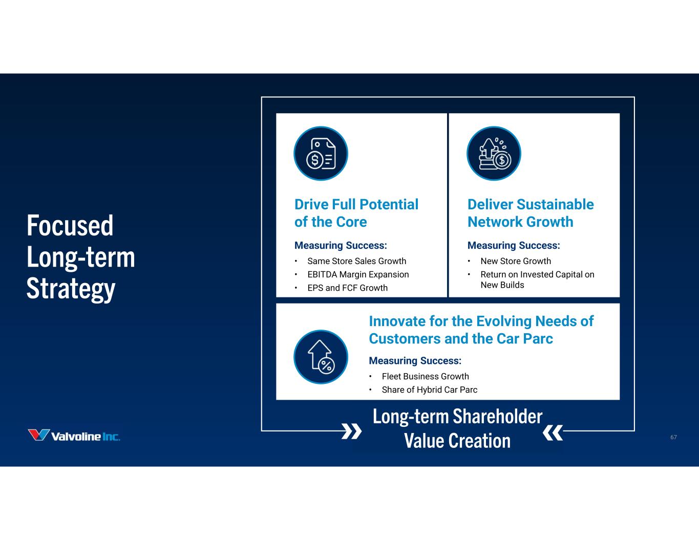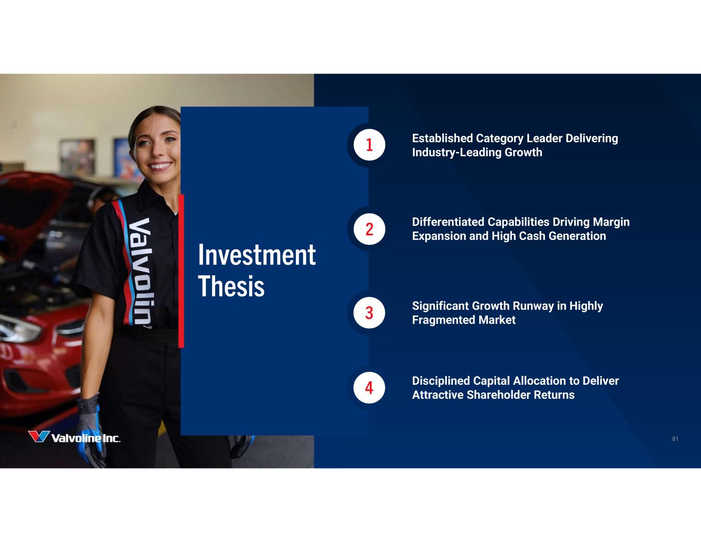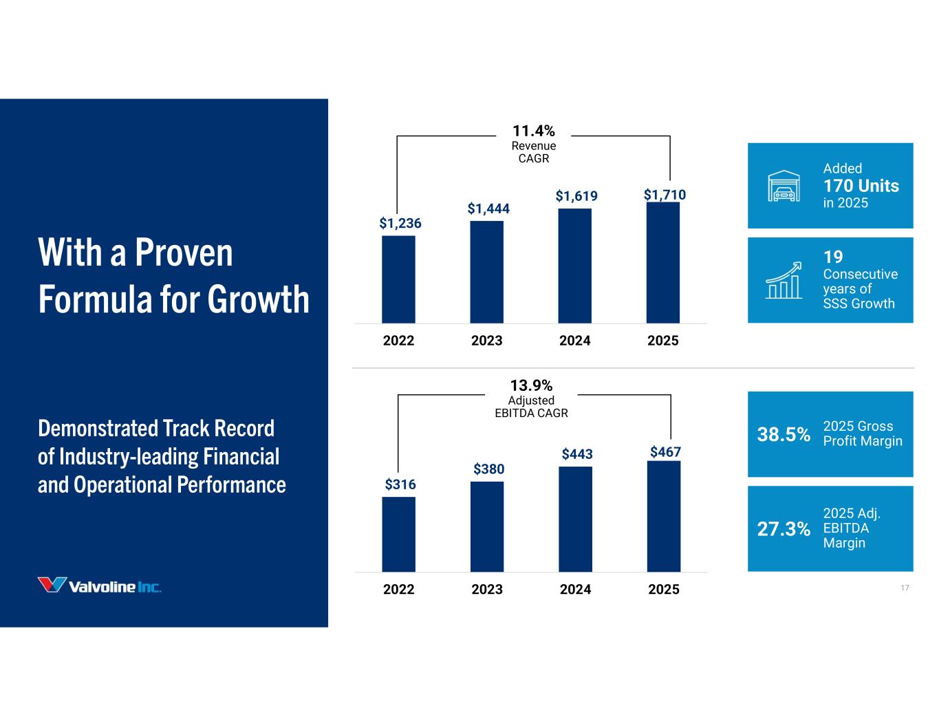 Valvoline has a Legacy of Delivering Value Valvoline’s Legacy Began First Company Quick Lube store acquired First Franchise Quick Lube store opened Valvoline Goes Public 1,000th Quick Lube store opened 1,500th Quick Lube store opened Valvoline becomes a pure-play retail services provider 2,365 System-Wide Stores 1866 1986 1989 2016 2021 2023 As of Dec 1st 10