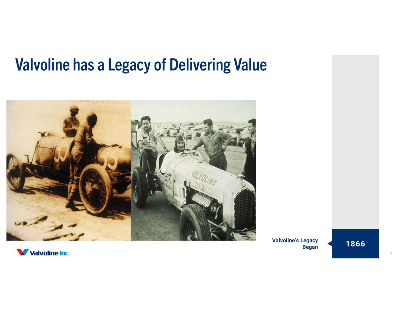 Valvoline has a Legacy of Delivering Value Valvoline’s Legacy Began 1866 1986 1989 2016 2021 2023 TODAY 7