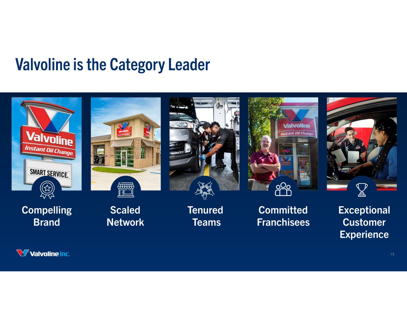 Valvoline is the Category Leader Compelling Brand Scaled Network Tenured Teams Committed Franchisees Exceptional Customer Experience 15