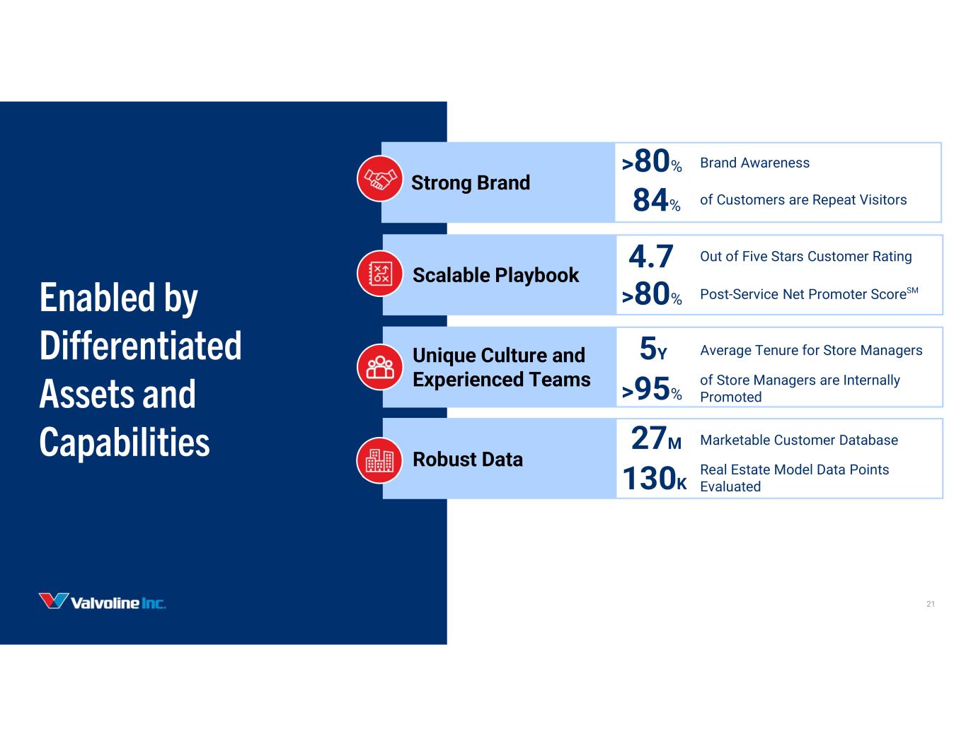 A Proven, Highly Experienced Management Team in Place Leadership Experience Lori Flees President & CEO Laura Carpenter Chief Customer Officer Linne Fulcher Chief Operating Officer Brian Tabb Chief Development Officer Adam Worsham Chief Franchising Officer Kevin Willis Chief Financial Officer Julie O’Daniel Chief Legal Officer & Corporate Secretary Jon Caldwell Chief People Officer Hitesh Patel Chief Technology & Cybersecurity Officer YEARS OF EXPERIENCE (Retail and Valvoline) 11 28 35 18 17 25 18 9 19 11 Advance Auto Parts Best Buy McDonald’s Sleep Number WingStop Allstate Amazon GM Microsoft Walmart