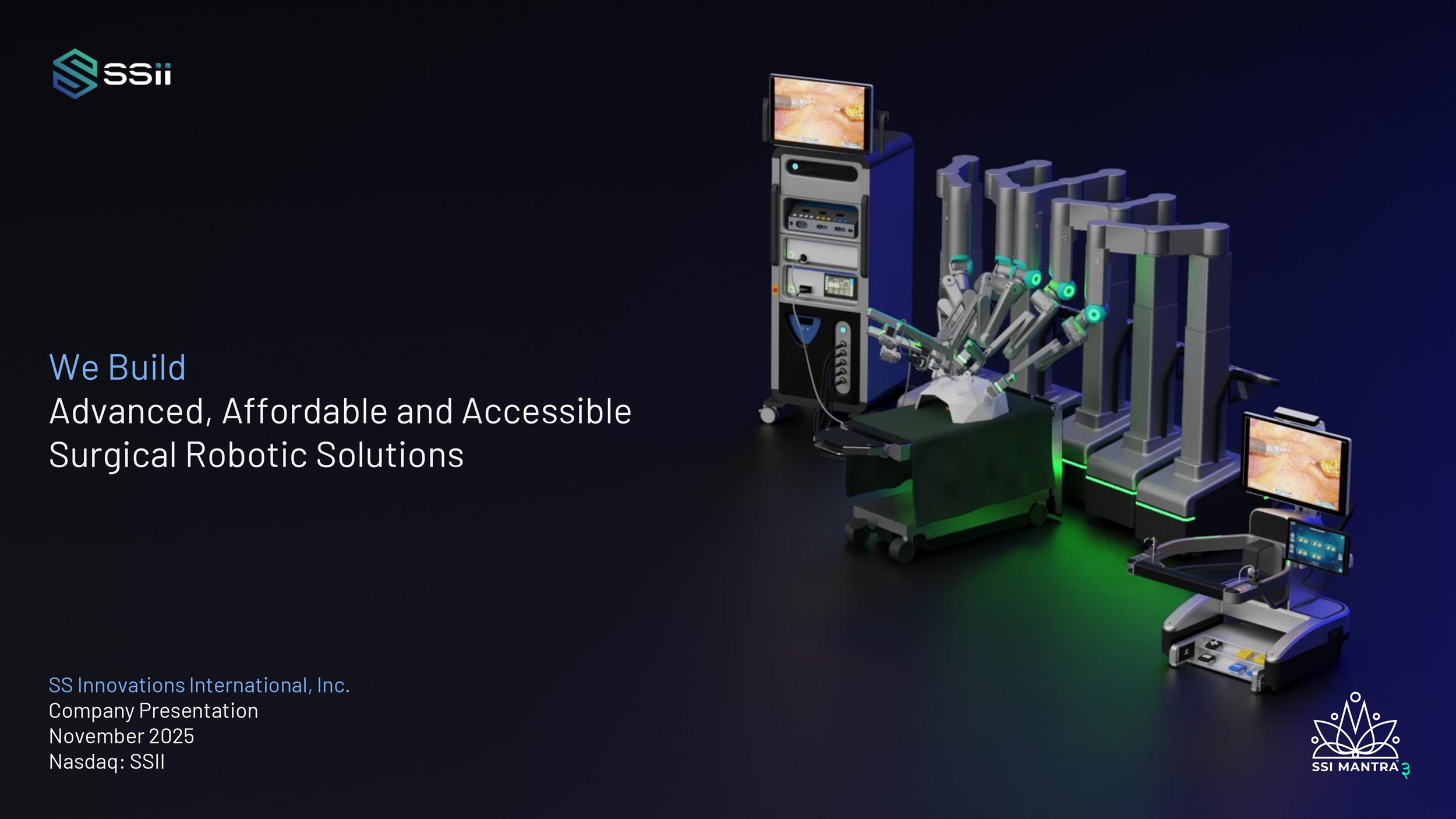 We Build Advanced, Affordable and Accessible Surgical Robotic Solutions SS Innovations International, Inc. Company Presentation November 2025 Nasdaq: SSII