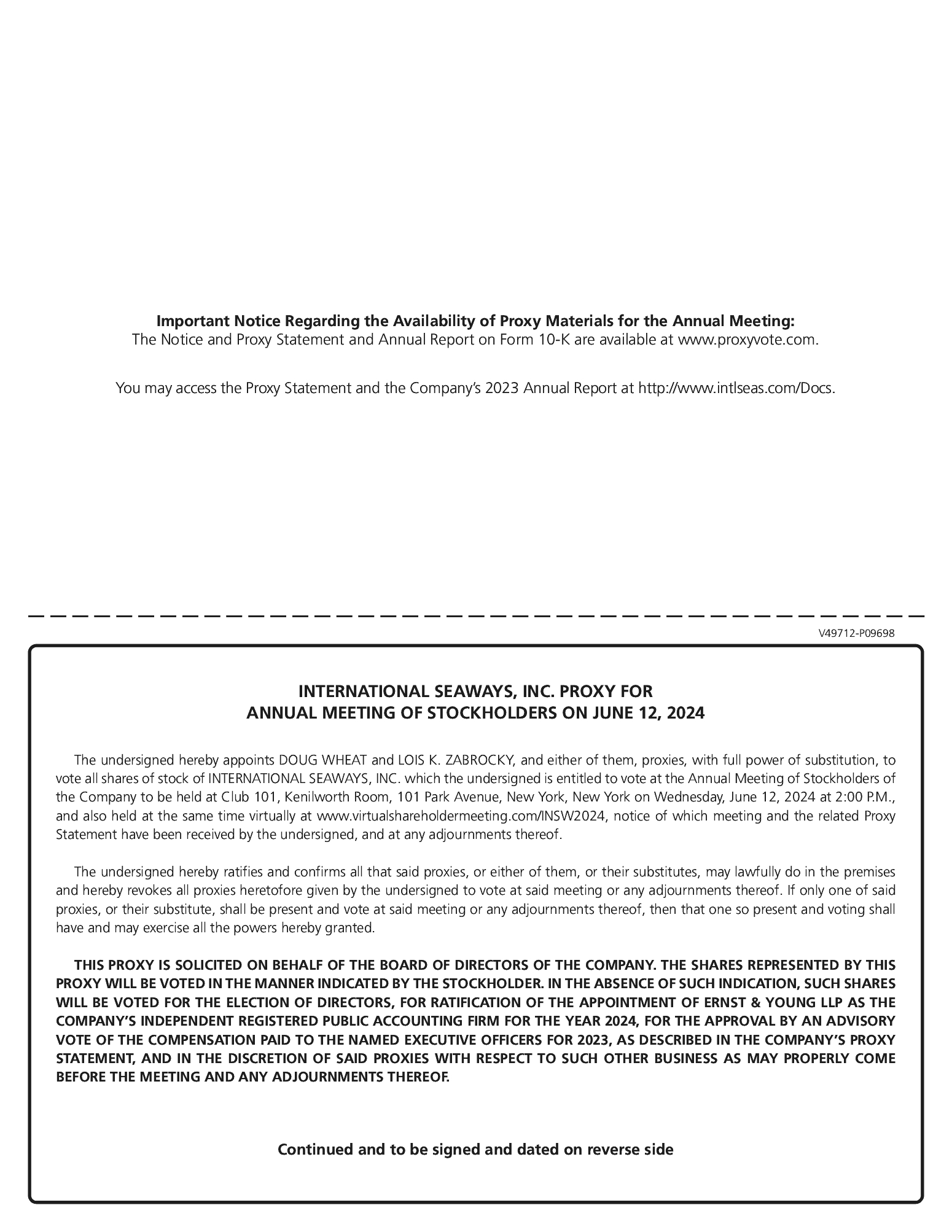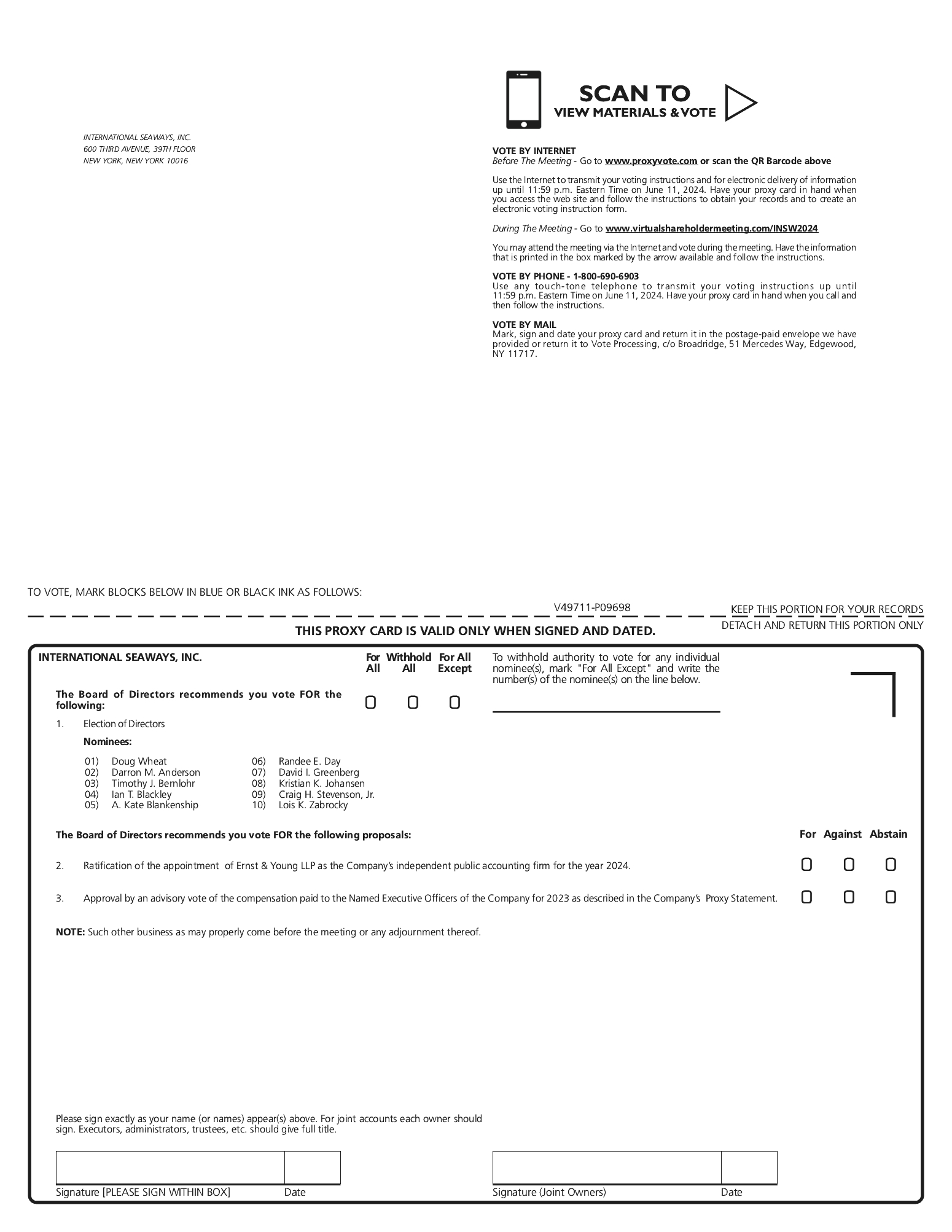 • | Any stockholder can attend the Annual Meeting live via the Internet at www.virtualshareholdermeeting.com/INSW2024 |