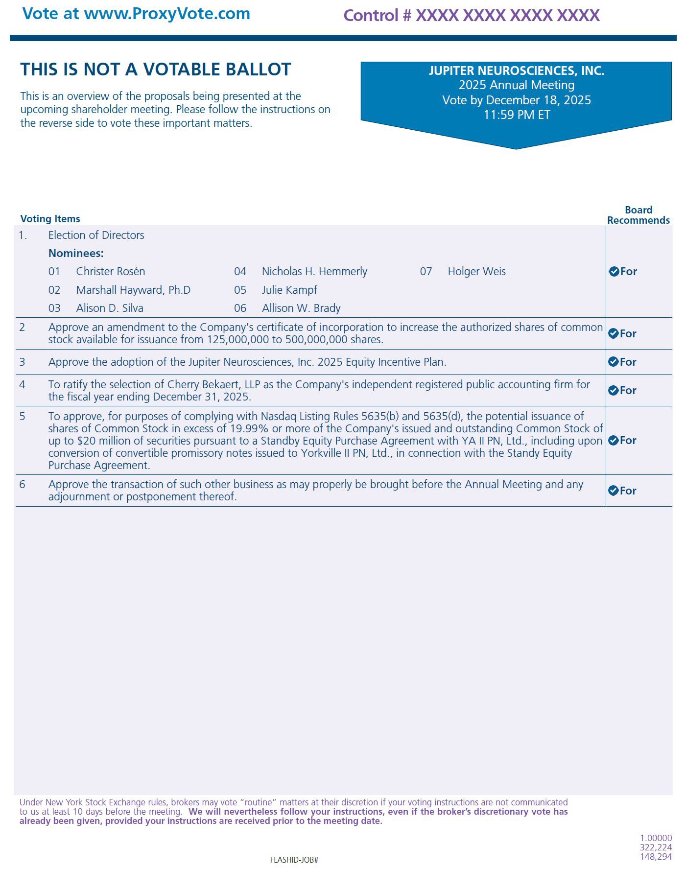 JUPITER NEUROSCIENCES, INC.