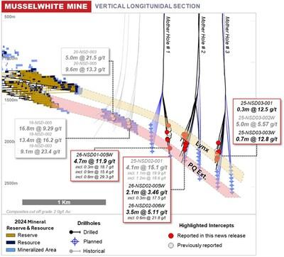 Figure 2: Musslewhite Mine Long Section Overview with Drill Result Highlights (CNW Group/Orla Mining Ltd.)