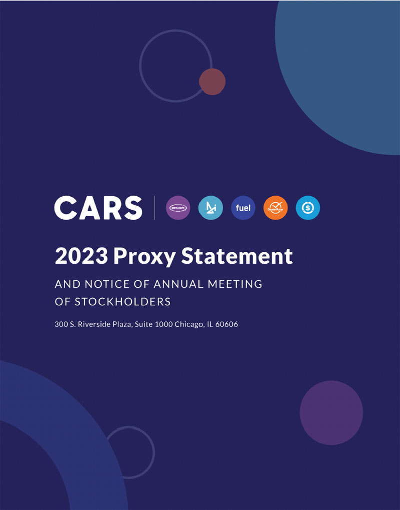 On behalf of the Board of Directors and the senior management team, we are pleased to invite you to join the 2023 Annual Meeting of Stockholders of Cars.com Inc., which will be held virtually on June 7, 2023, beginning at 9:00 a.m. Central Time. You may join at www.virtualshareholdermeeting.com/CARS2023.