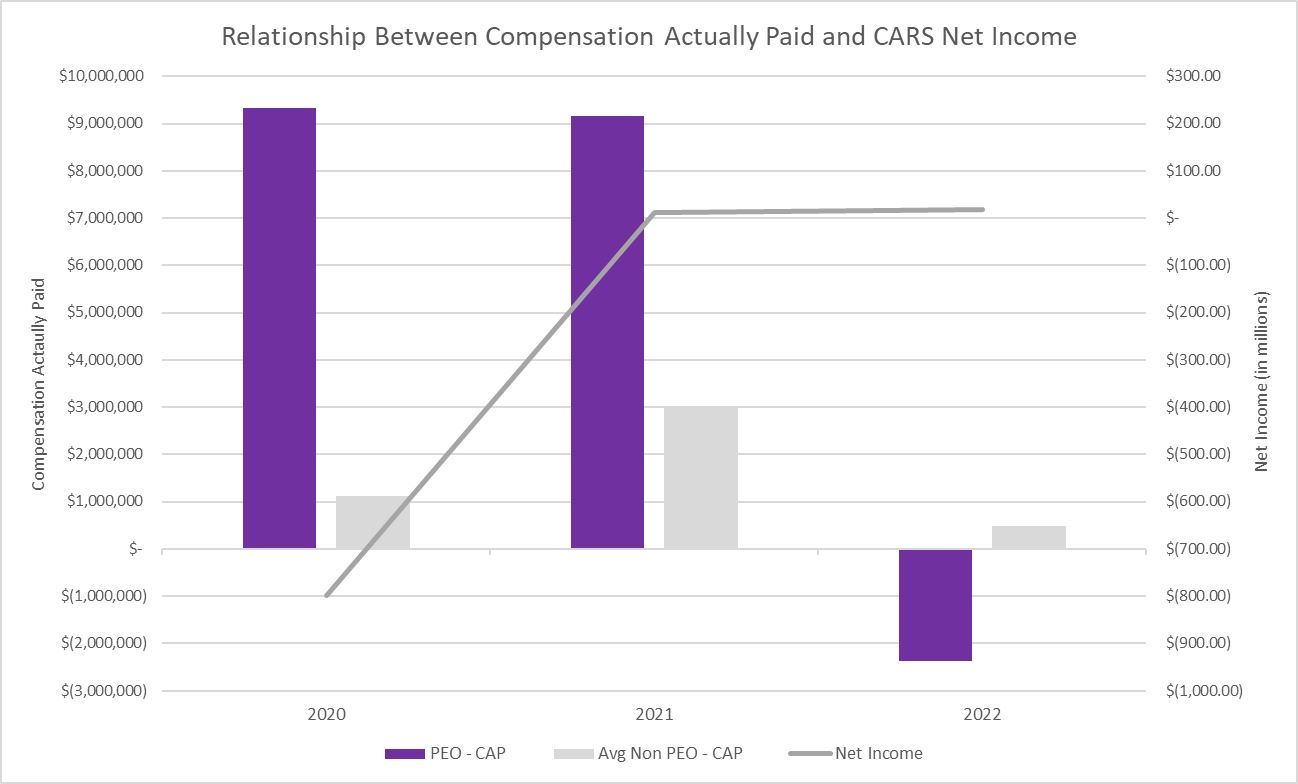 The Compensation Committee has approved the compensation arrangements for our NEOs described in the Compensation Discussion and Analysis section and Named Executive Officer Compensation section. We urge you to read the Compensation Discussion and Analysis section for a more complete understanding of our executive compensation plans, including our compensation principles, our objectives, and the 2022 compensation of our named executive officers. Our compensation programs are structured to align the interests of our executive officers with the interests of our stockholders and to attract, motivate, and retain key executives who drive CARS’ success.