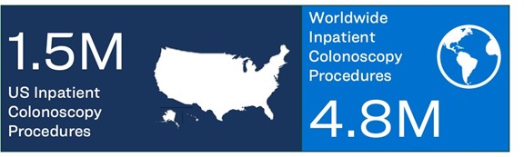 Upper and Lower endoscopy are performed in the hospital setting to diagnose and treat patients with emergent GI disorders. Based on our review and analysis of 2019 market data and 2021 projections for the U.S. and Europe, as obtained from iData Research Inc., we believe that during 2023 approximately 1.5 million inpatient colonoscopy procedures were performed in the U.S. and approximately 4.8 million worldwide. Upper GI bleeds occurred in the U.S. at a rate of approximately 400,000 cases per year in 2019, according to iData Research Inc. These procedures are typically performed to help diagnose and treat GI bleeding, unknown abdominal pain, irritable bowel syndrome (IBS), inflammatory bowel disease (IBD), anemia or infection.
