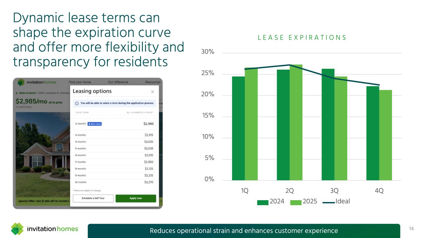 14Reduces operational strain and enhances customer experience Dynamic lease terms can shape the expiration curve and offer more flexibility and transparency for residents 0% 5% 10% 15% 20% 25% 30% 1Q 2Q 3Q 4Q L E A S E E X P I R A T I O N S 2024 2025 Ideal