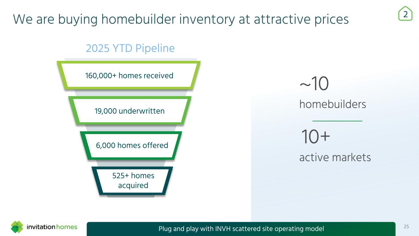 2We are buying homebuilder inventory at attractive prices ~10 homebuilders 10+ active markets 19,000 underwritten 6,000 homes offered 160,000+ homes received 525+ homes acquired 2025 YTD Pipeline Plug and play with INVH scattered site operating model 25