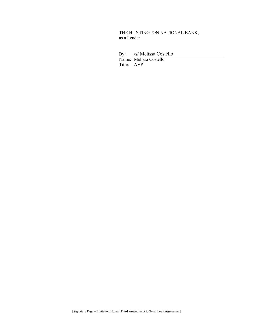 [Signature Page – Invitation Homes Third Amendment to Term Loan Agreement] THE HUNTINGTON NATIONAL BANK, as a Lender By: /s/ Melissa Costello………………………… Name: Melissa Costello Title: AVP