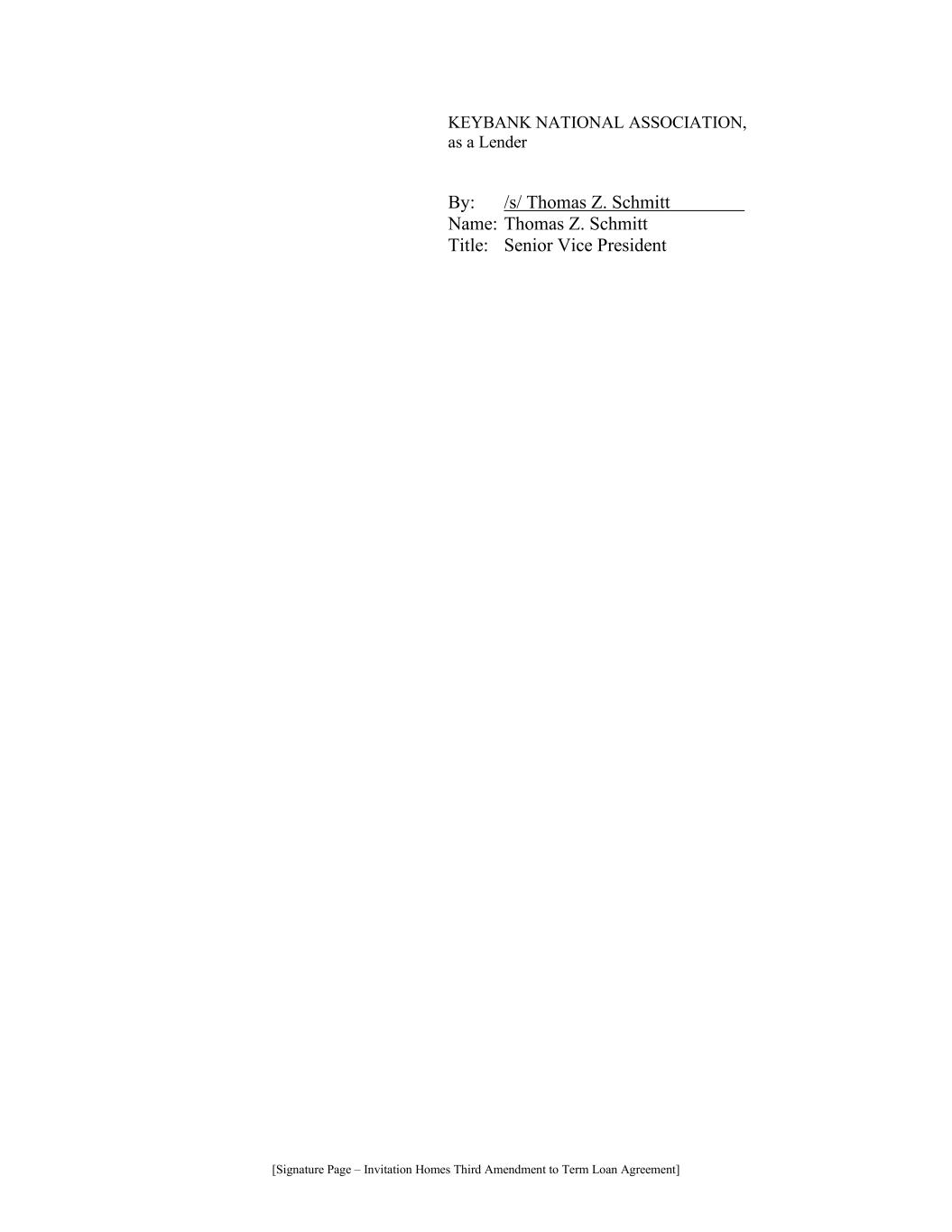 [Signature Page – Invitation Homes Third Amendment to Term Loan Agreement] KEYBANK NATIONAL ASSOCIATION, as a Lender By: /s/ Thomas Z. Schmitt …… … Name: Thomas Z. Schmitt Title: Senior Vice President