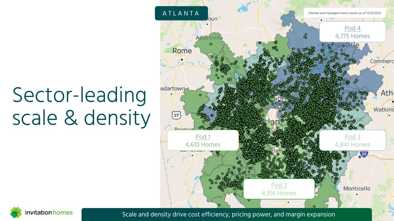 High-growth locations Percent of 4Q25 revenue Seattle 5% Minn. 1% Denver 4% Dallas 4% Phoenix 9% Atlanta 13% Tampa 11% Southern California 11% Las Vegas 4% South Florida 12% Northern California 5% Carolinas 6% Jax. 2% Orlando 8%Hou. 2% Chicago 3% Primarily infill locations in high-growth markets for long-term performance 6